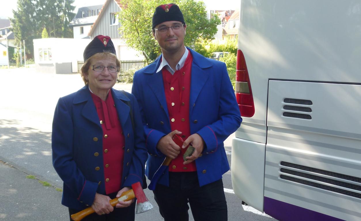 Empfang durch unsere beiden Stadtführer, als Bartenwetzer verkleidet